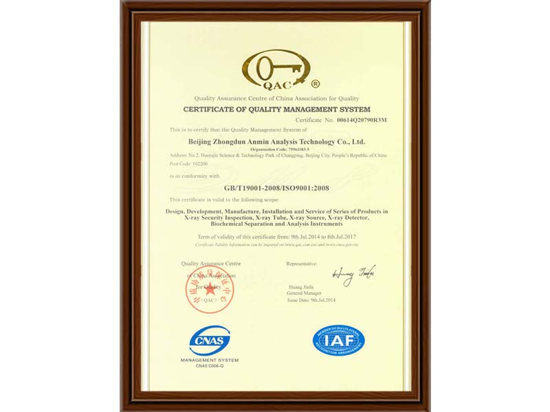 質(zhì)量管理體系認證證書中文