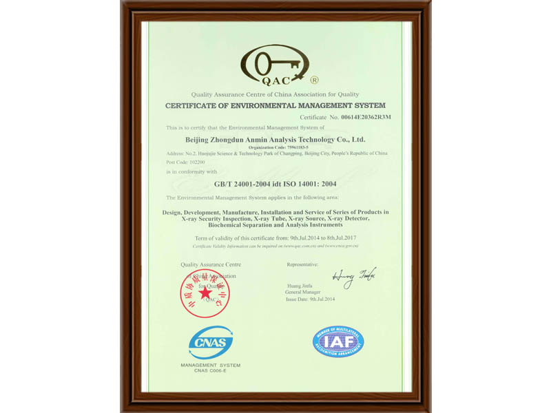 環(huán)境管理體系認(rèn)證證書英文